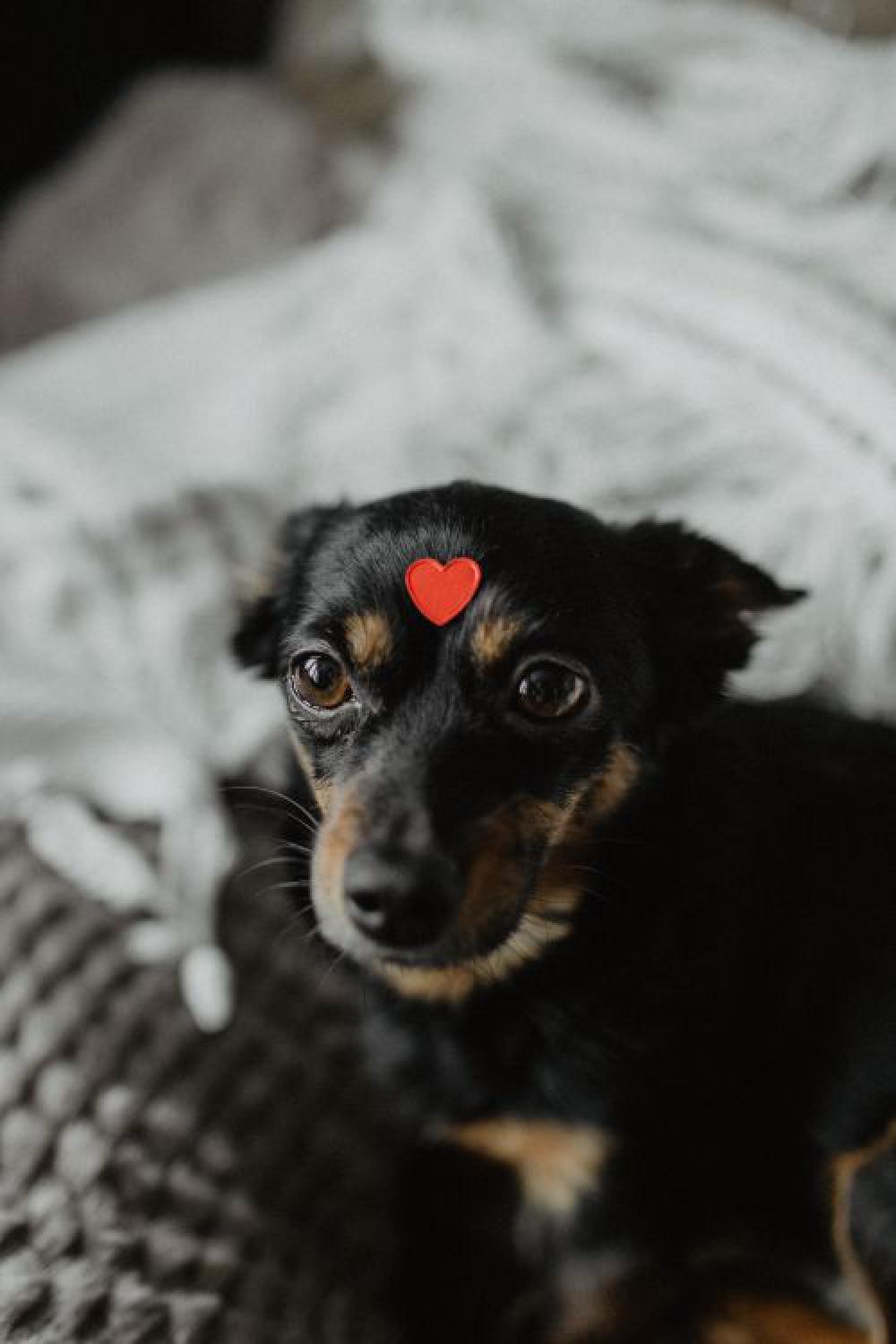 A dog with heart on head
