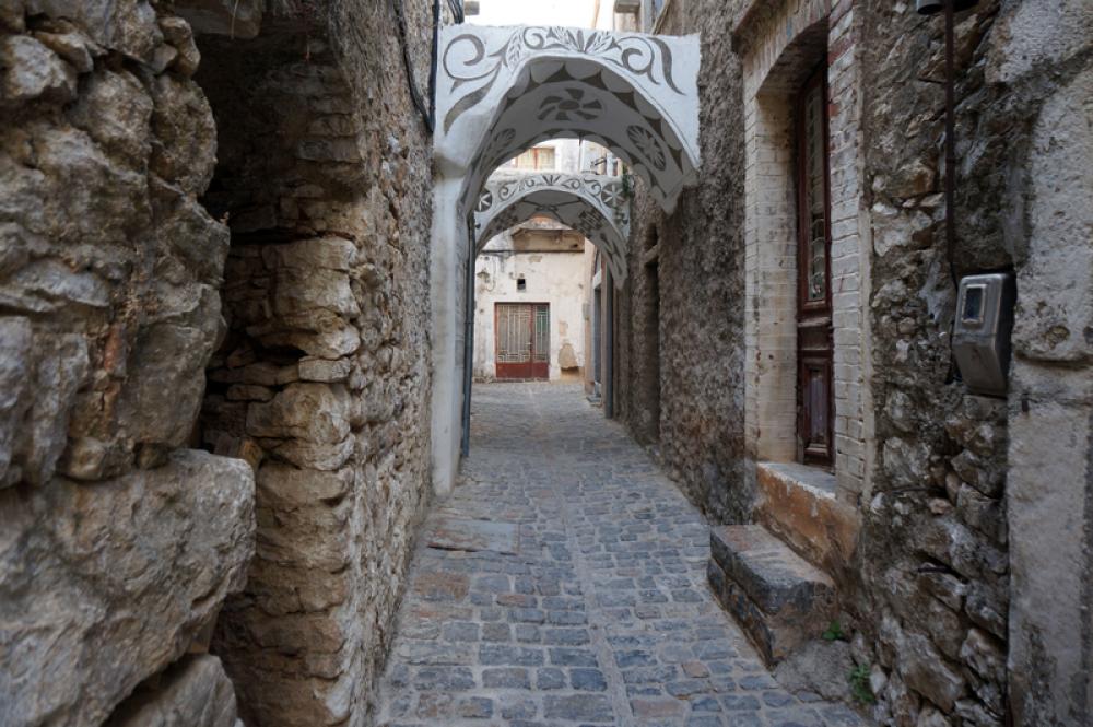 An alleyway of stone in Chois, Greece free photo