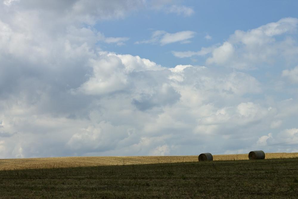 Arable Field Hay Bales Agriculture Landscape Wide