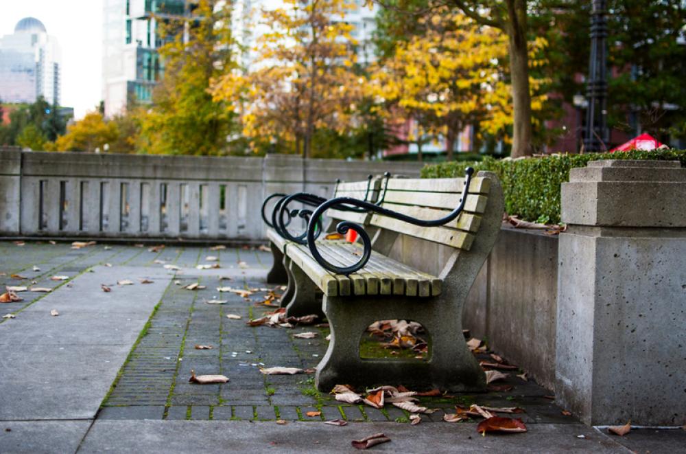 Benches in Harbour Green Park in Vancouver, British Columbia, Canada free photo