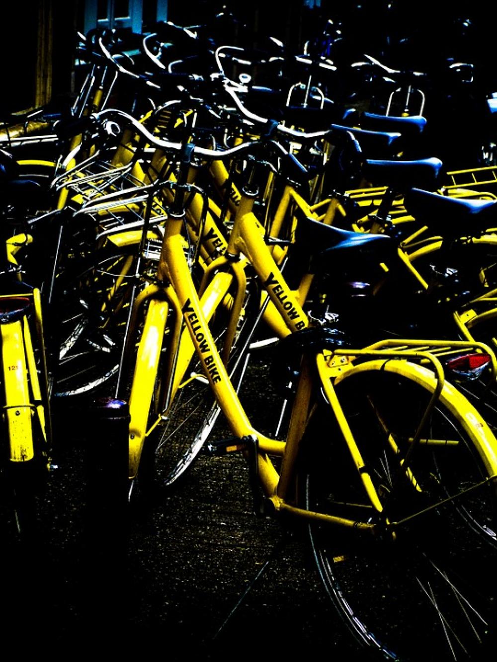 Bikes Yellow Amsterdam Street Bicycle Netherlands