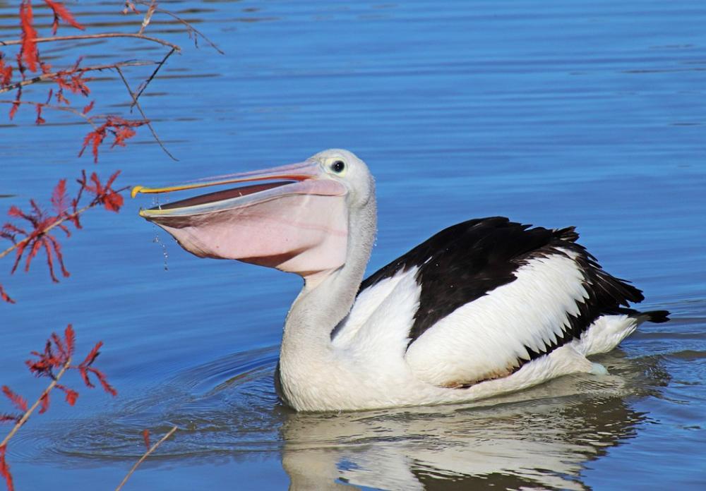 Bird Pelican Feeding Lake Swimming Wildlife