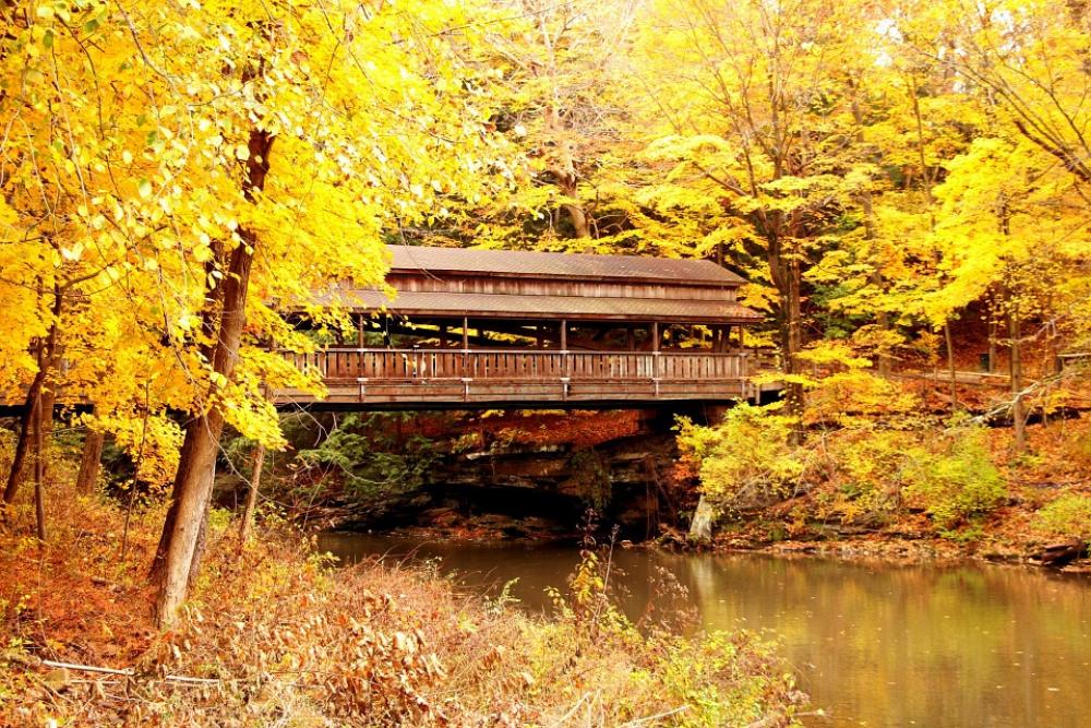 Bridge Covered Bridge Autumn Fall Leaves Yellow
