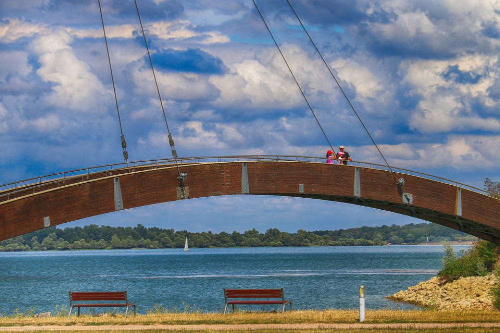 Bridge Suspended Lake Tourists Shoals Rest Water