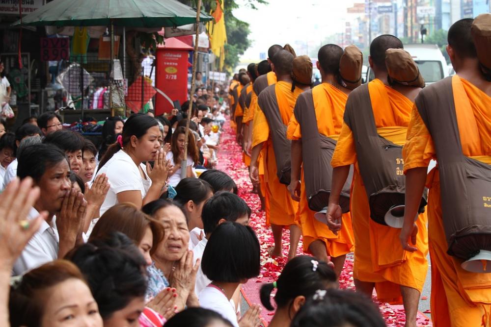 Buddhists Walk Monks Tradition Ceremony Thailand