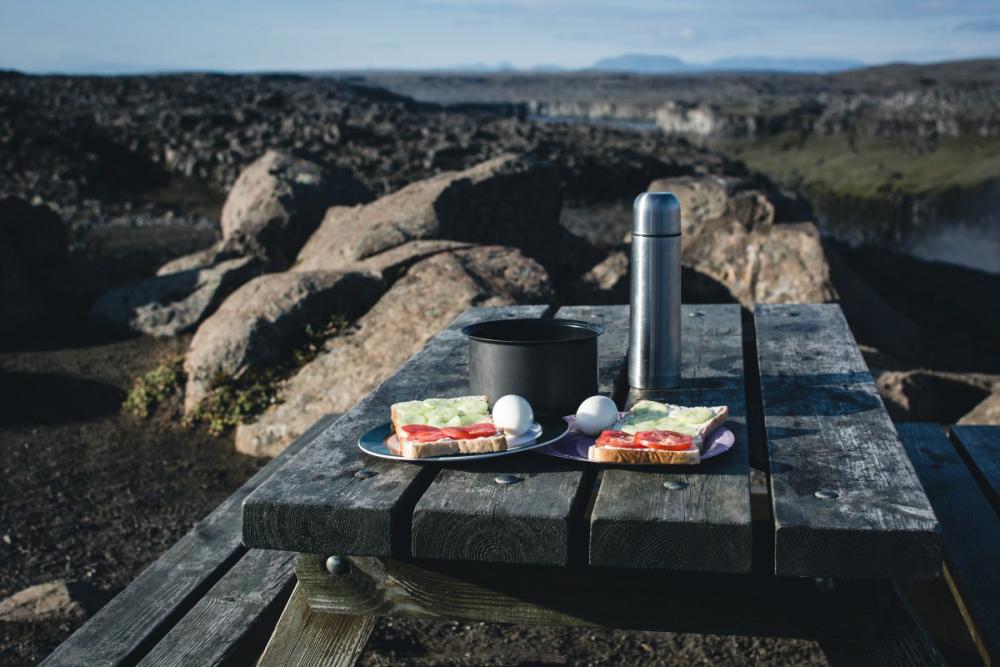 Camping breakfast in nature