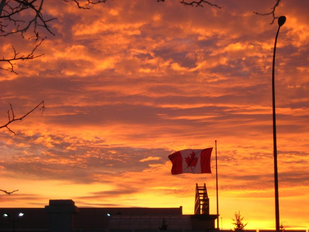 Canada Flag Sunset Sky Landscapes Twilight Cloud