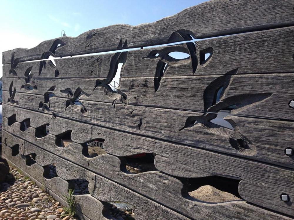 Carved wood fence seagulls birds seaside