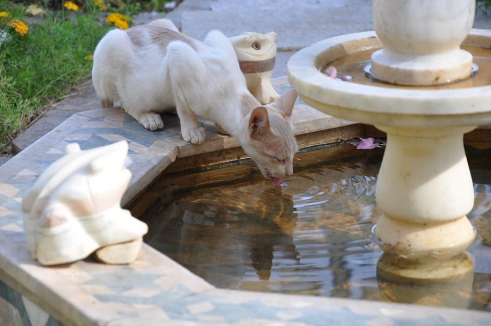 Cat Animal Animals Eyes Fur Fountain Cat Drinking