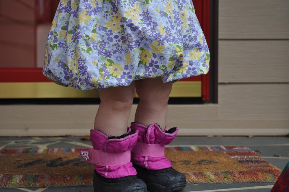 Child Girl Cute Pink Waiting Rain Boots Rainy Day
