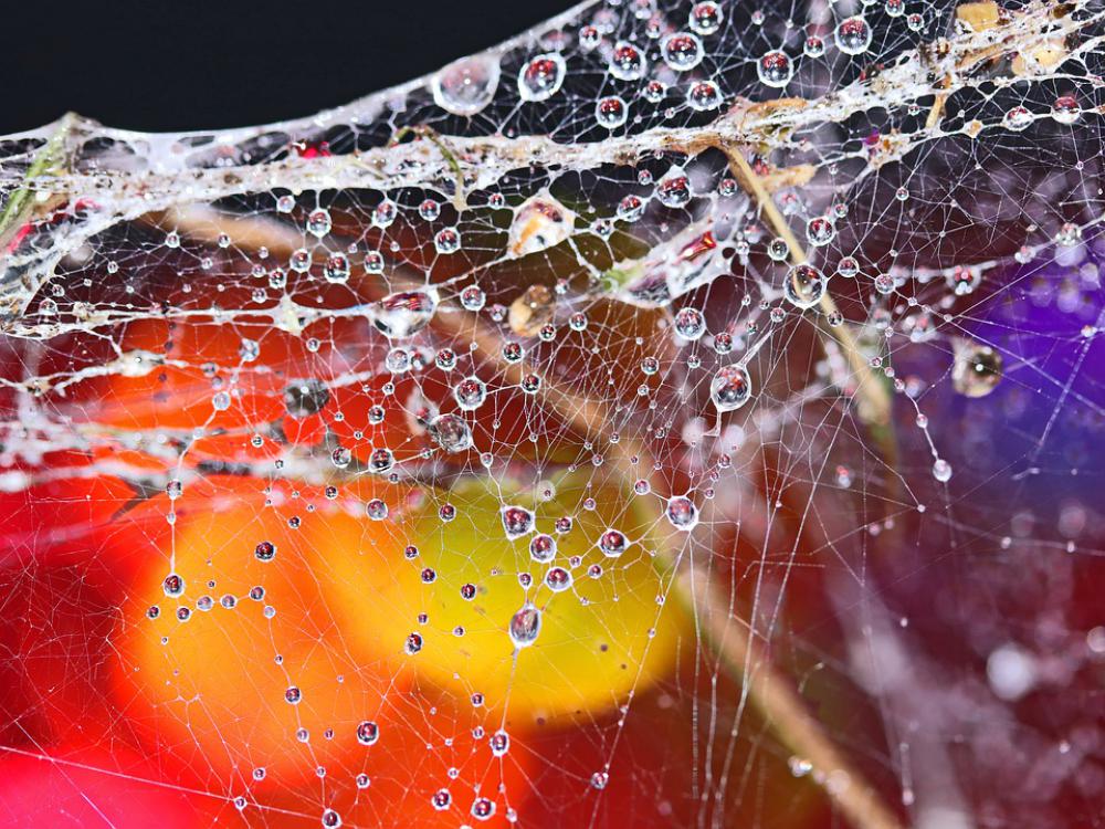 Cobwebs Waterdrops Refraction Colorful Bokeh