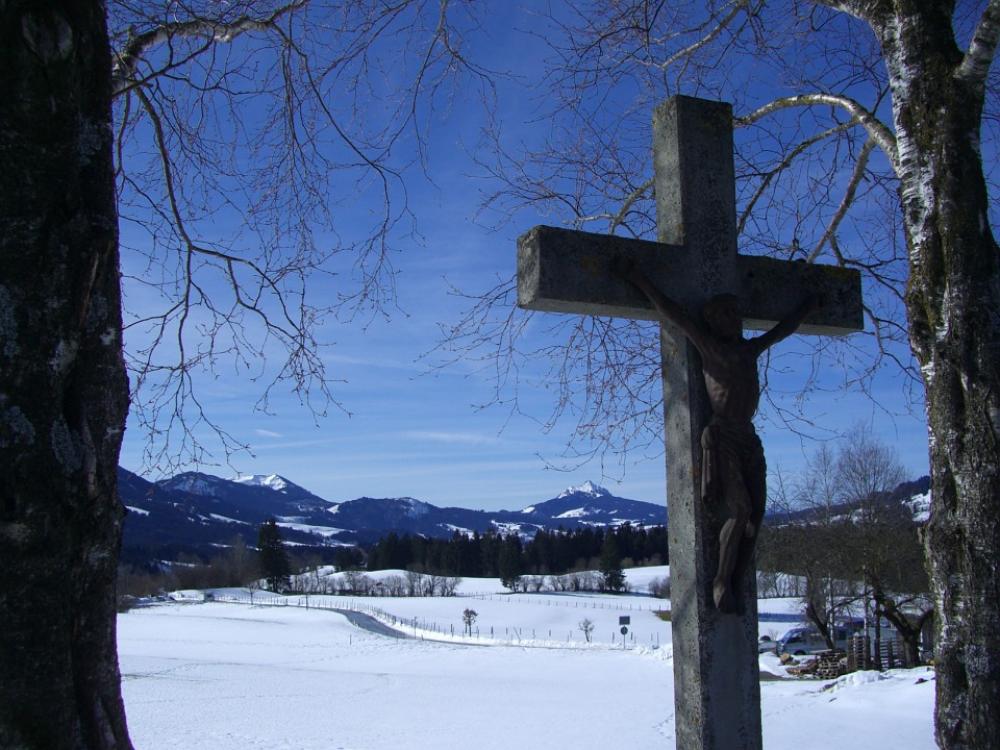 Cross Stone Cross Winter Snow Mountain Panorama