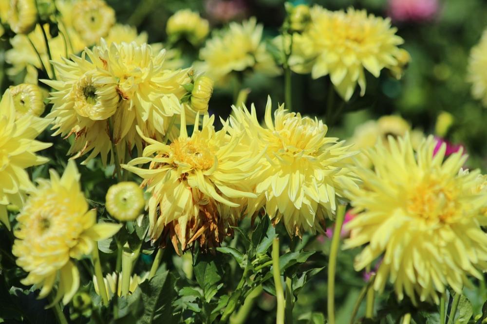 Dahlias Flowers Yellow Flowers Bloom Garden Green