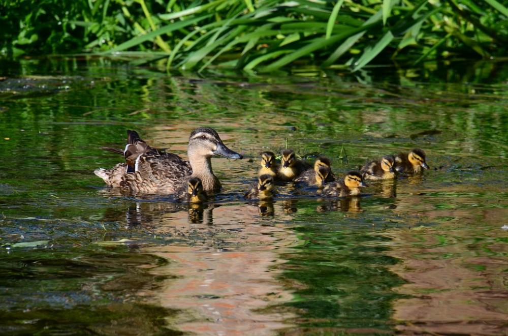 Ducks Chicks Cute Young Bird Waterfowl Duck Family
