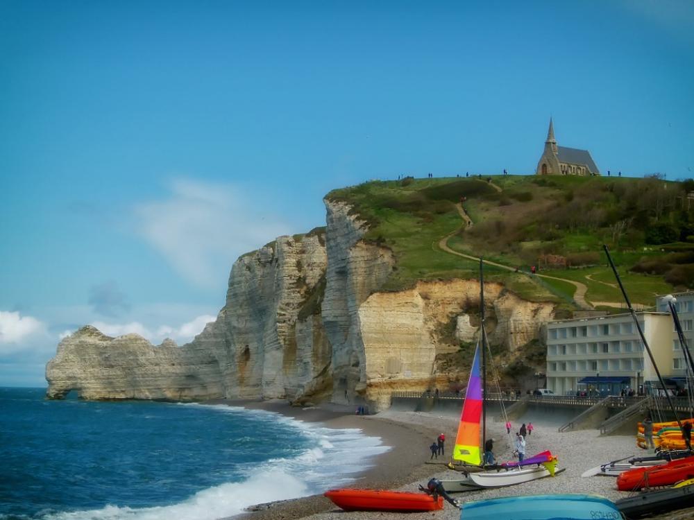 Etretat France Sea Ocean Water Waves Beach Boats
