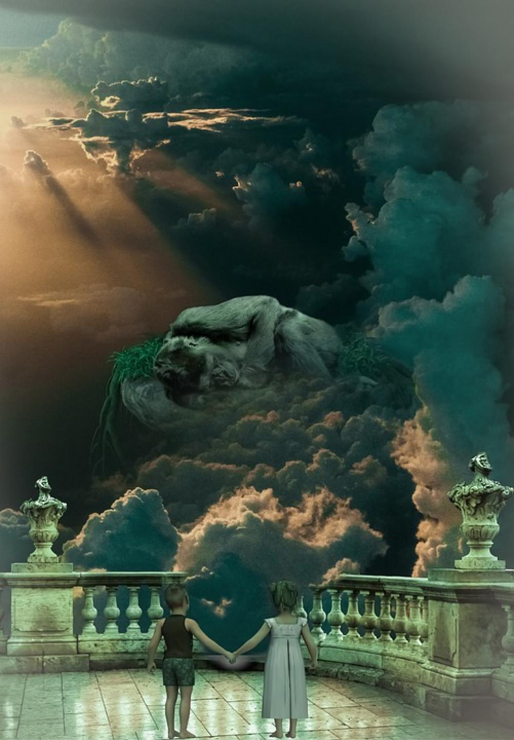 Fantasy Animal Sky Children Cloud Ape Monkey