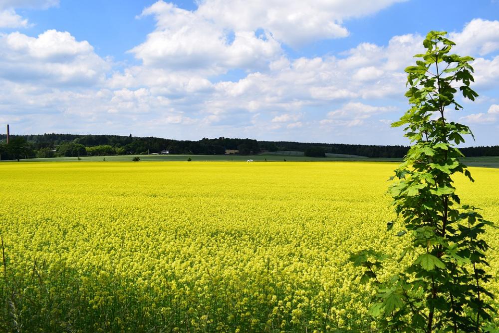 Field Of Rapeseeds Landscape Clouds Summer Nature