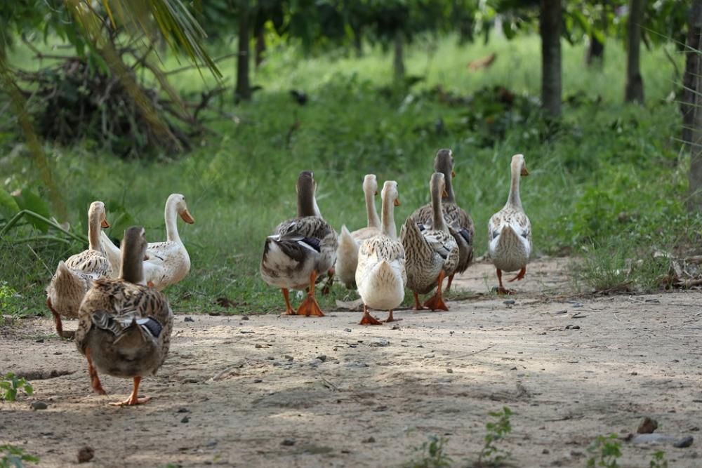 Flock Of Ducks Following Leading Nature Natural