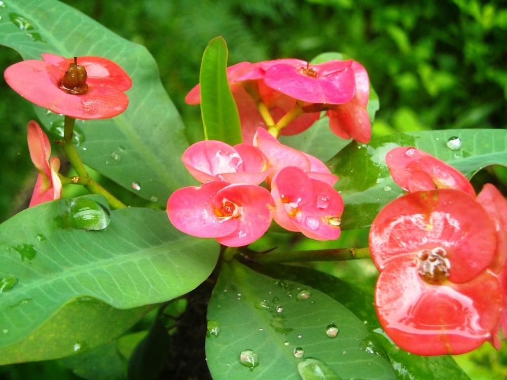Flowers Ephorbia Red Leaf Green Plants Plant
