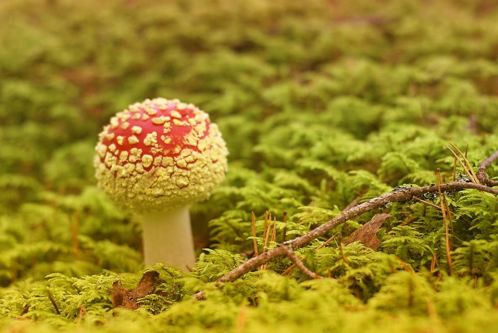 Forest Branch Moss Amanita Mushroom Nature