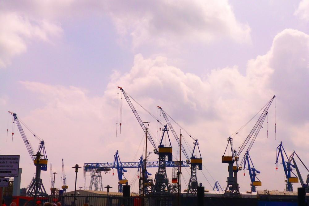 Hamburg Port Cranes Seaport Jib Crane Clouds