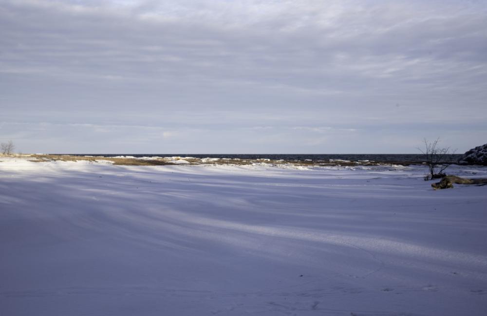 Horizon with snowy landscape and lake Superior at Gooseberry Falls State Park, Minnesota free photo