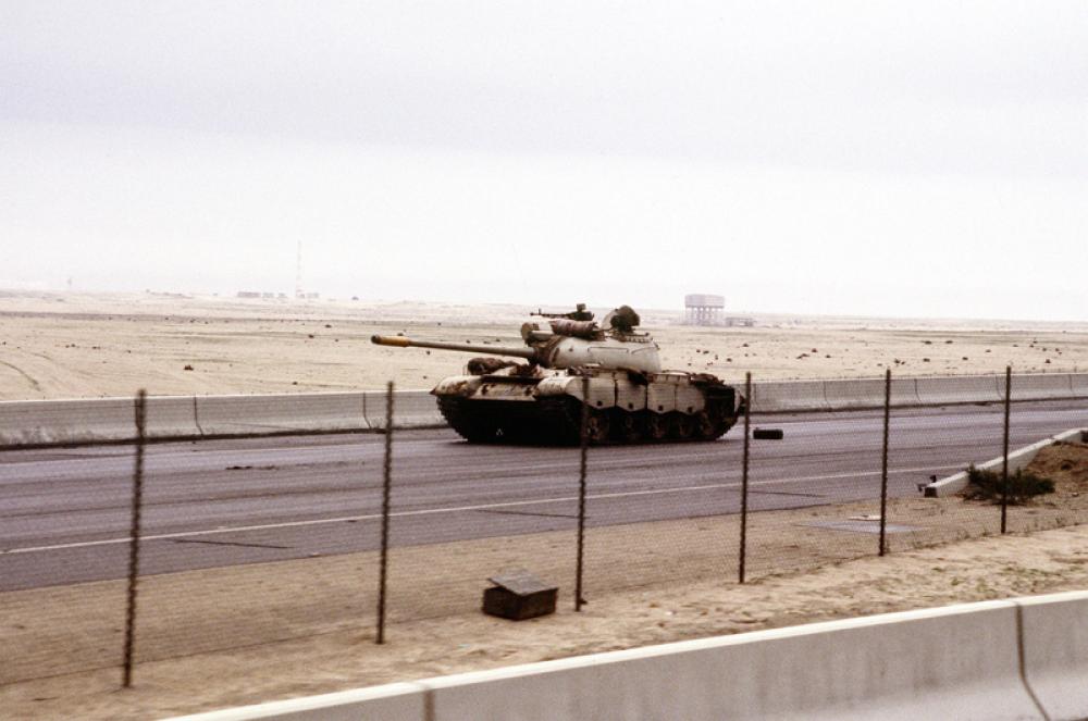 Iraqi Type 69 tank on the road into Kuwait City during the Gulf War free photo