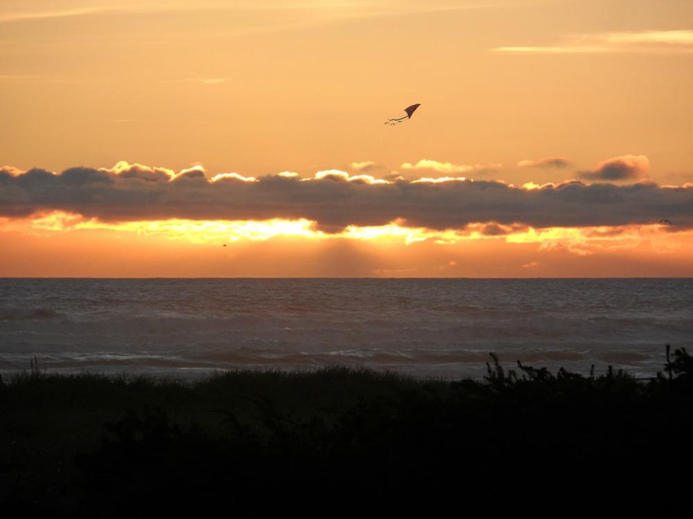 Kite Sunset Ocean Sky Sun Sea Silhouette Water