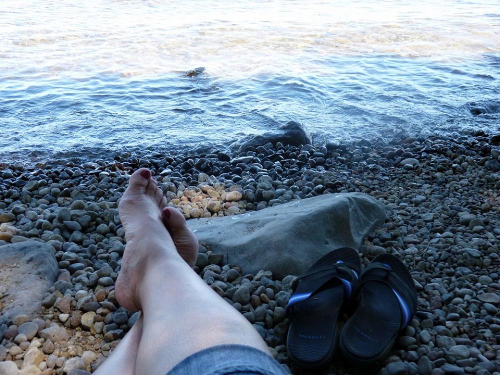Lake Tahoe Beach Rock Shore Waves Cooling The Feet