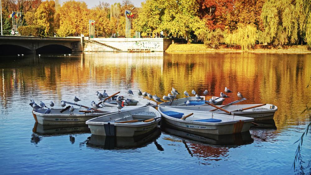 Landscape Nature Trees Autumn Colors Boats Birds
