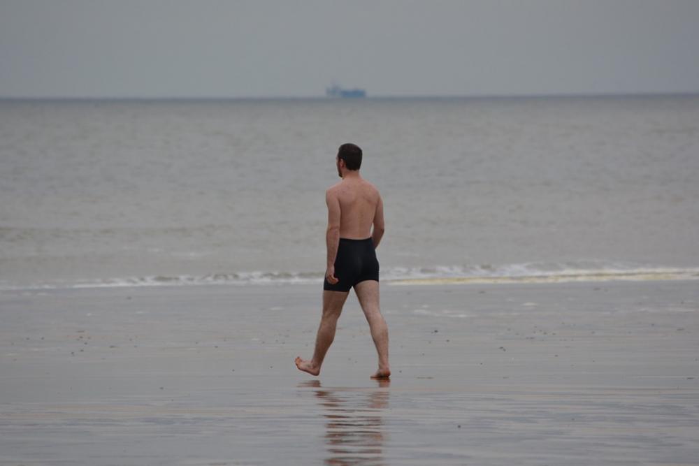 Man Swimming Trunks Sea Swimming Steps People