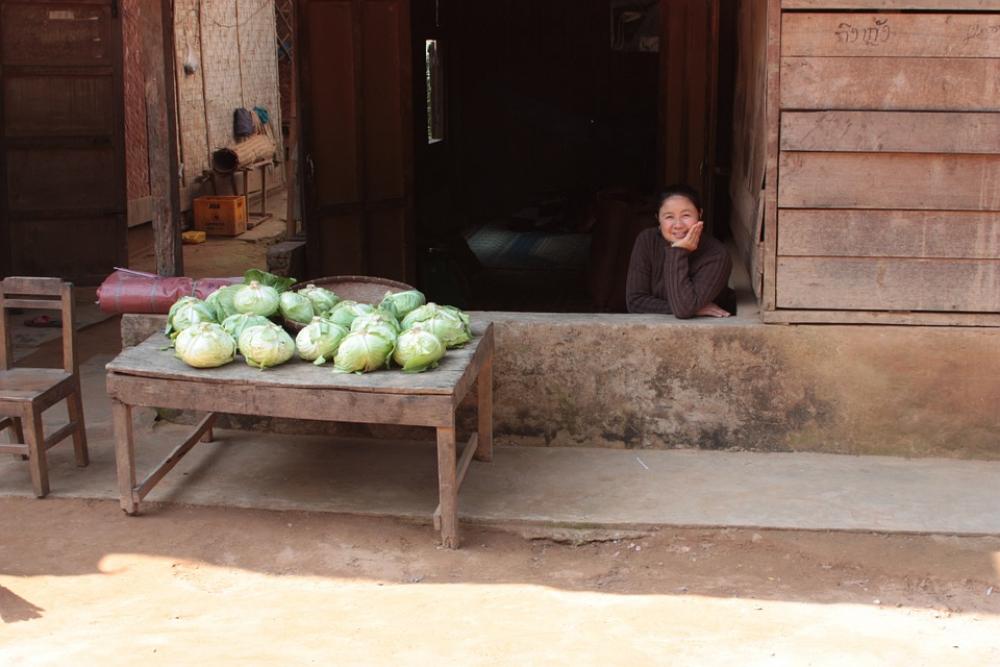 Market Women Kohl Cole Food Vegetables Asia Laos
