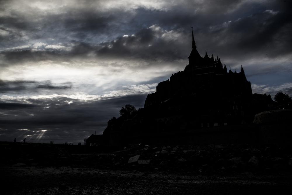 Mont St-Michel France Normandy Abbaye Sunset Dark
