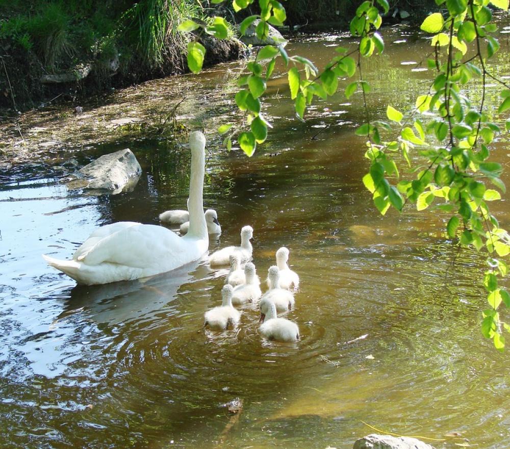 Mother Swan Cygnets Spring Animal Nature