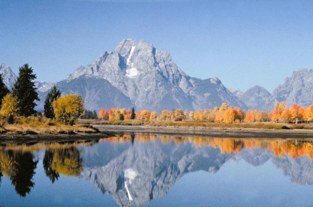 Mount Moran and Lake reflection landscape in Grand Teton National Park, Wyoming free photo