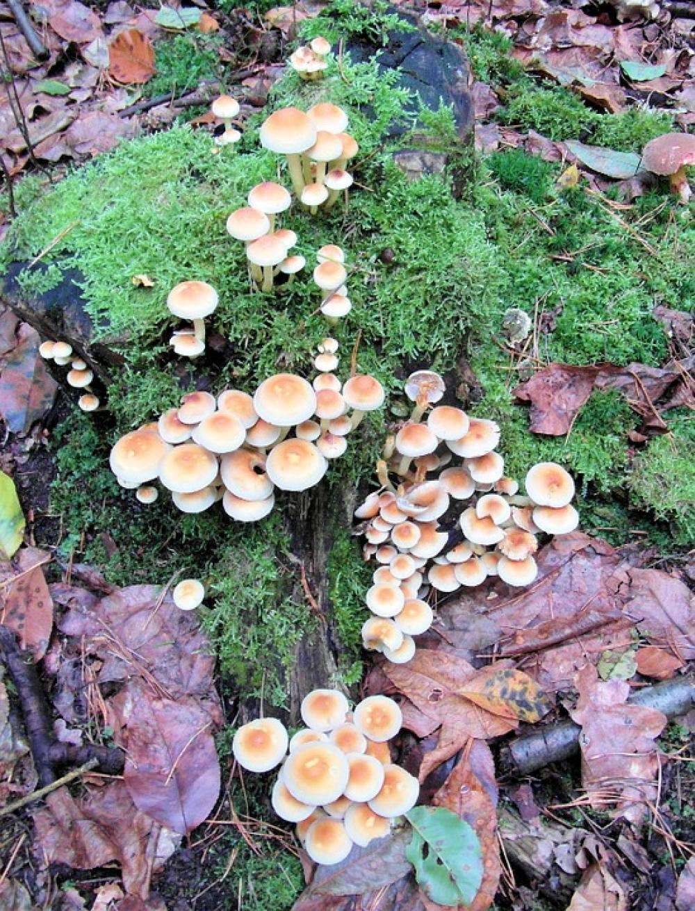 Mushrooms Sponge Tree Stump Moss