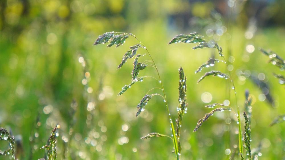 Nature Plants Green Grass Blades Drops Water