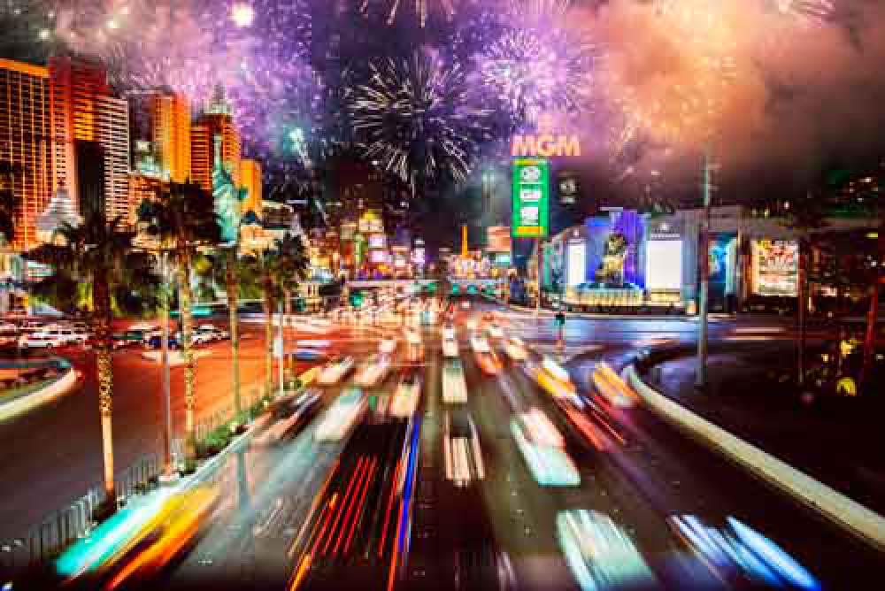 New Years Celebrations With Fireworks In Las Vegas