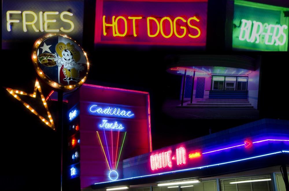 Night Neon Signs Hot Dogs Bistro Dining