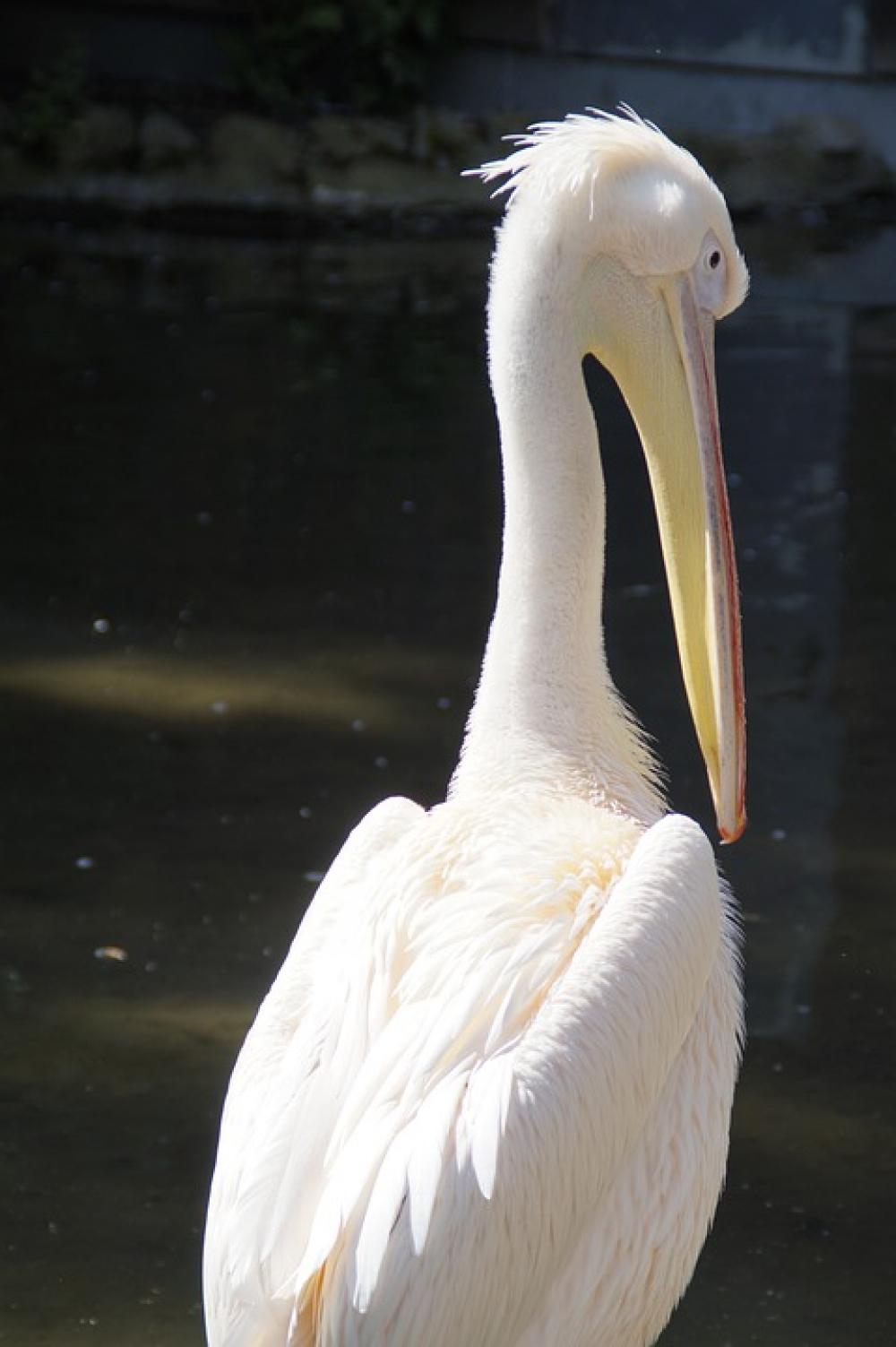 Pelikan White Bird Water Bird Move Rear View Head