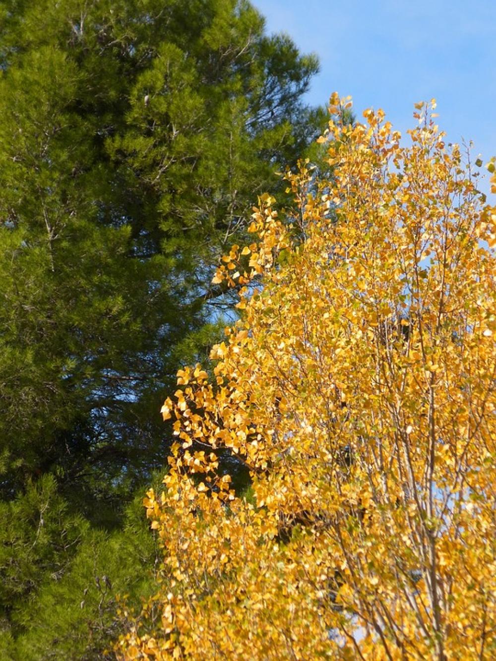 Pine Poplar Green And Yellow Autumn Contrast