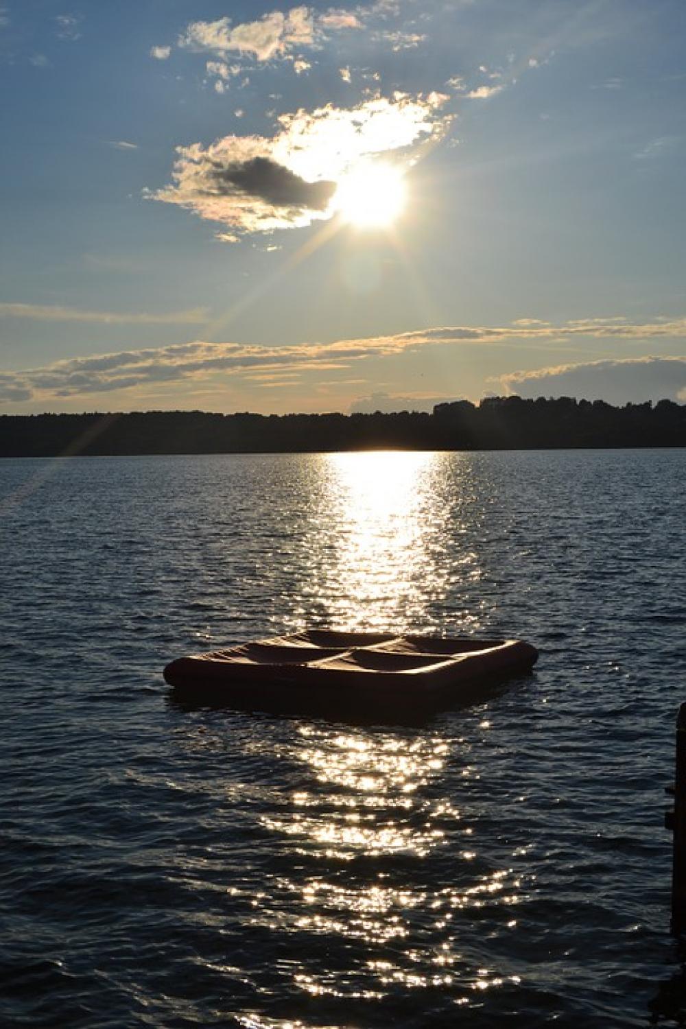 Raft Cloud Sun Mountains Sea Trees Lake Swim