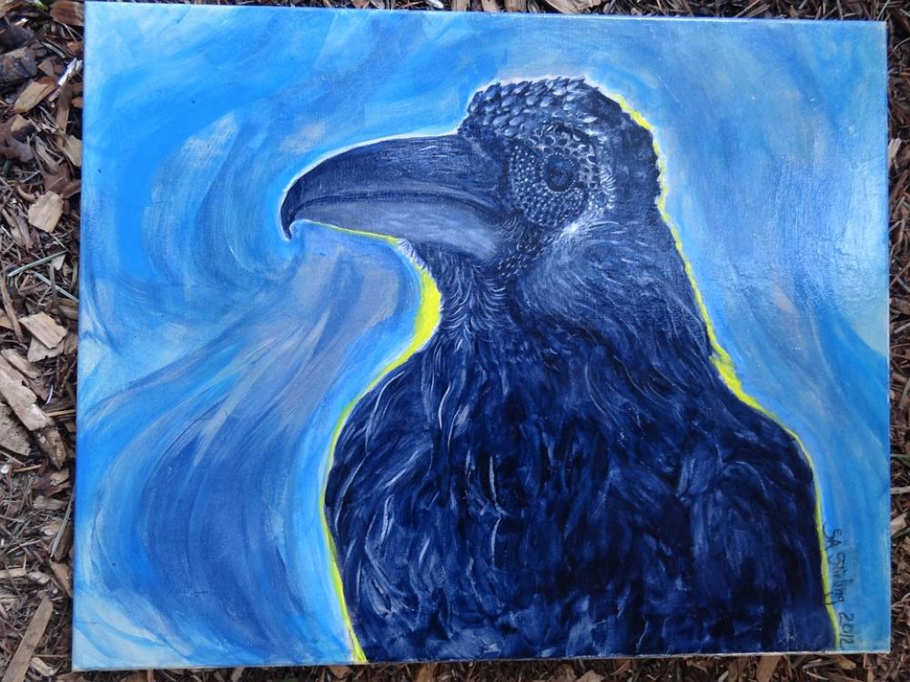 Raven Crow Bird Feathers Painting Acrylic