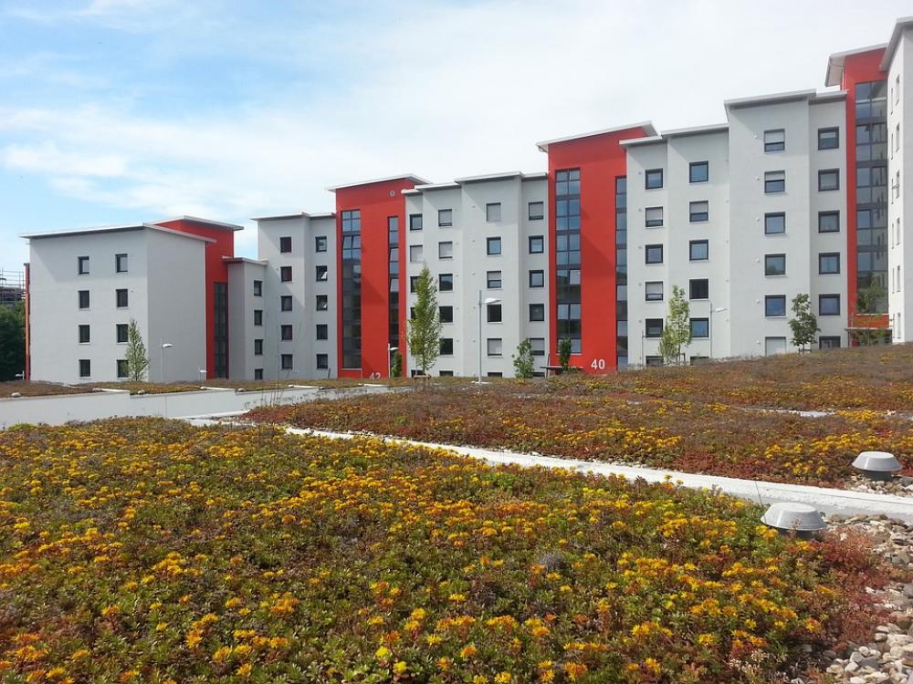 Rehabilitation New Building Green Roof Red White