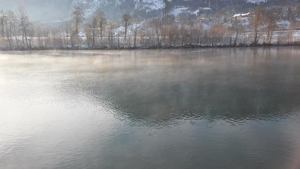 River Drau Fog Winter Mirroring Snow Mood