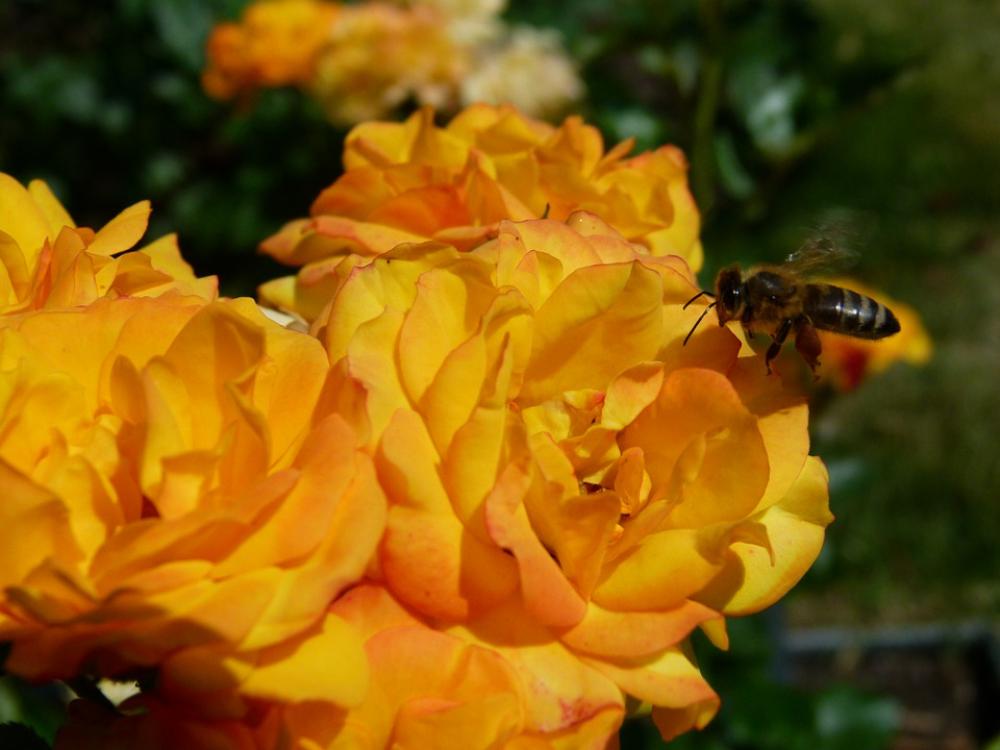 Rose Yellow Bee Nature Rose Garden Colorful Roses