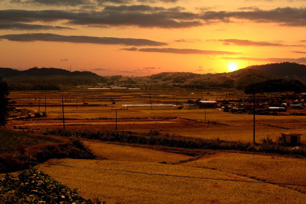 Rural Landscape Rice Paddies Sunset Glow Nature