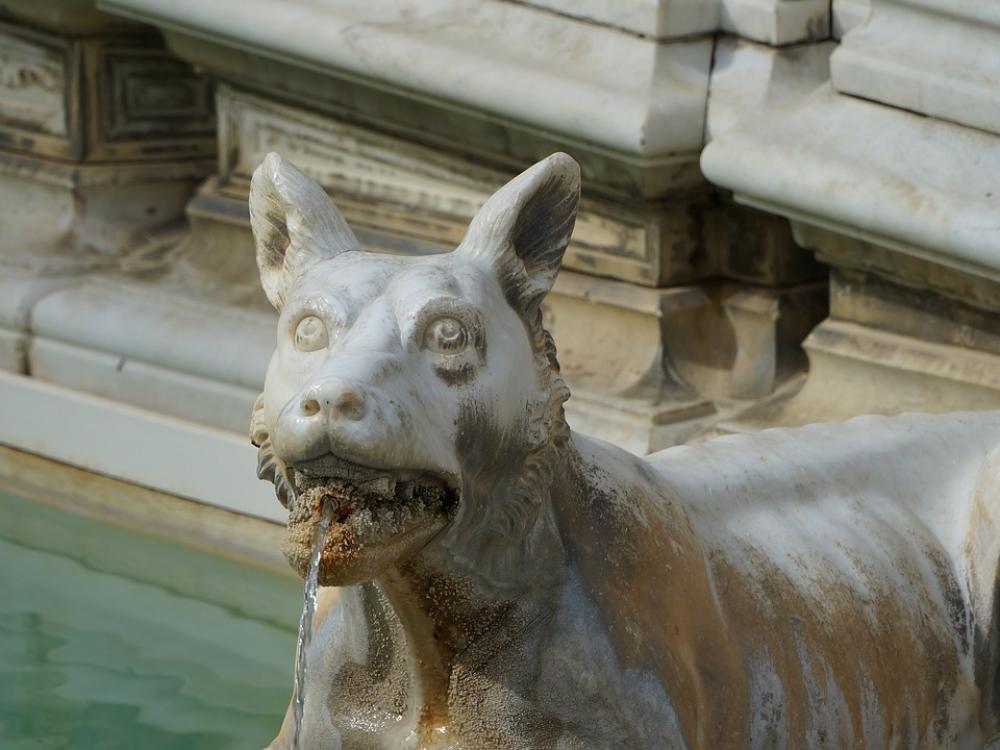 Siena Fountain Statue Wold Dog Italy Europe