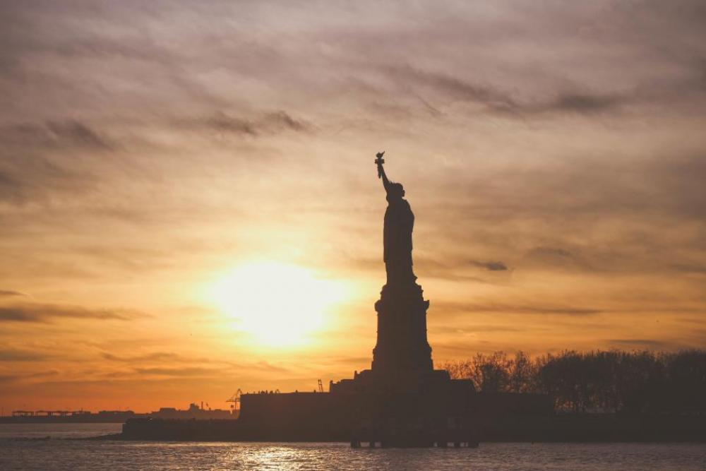 Statue of Liberty shadow silhouette sunset dusk