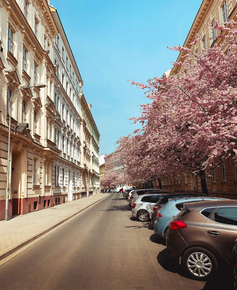 Street Full of Blooming Trees in Brno, Czechia